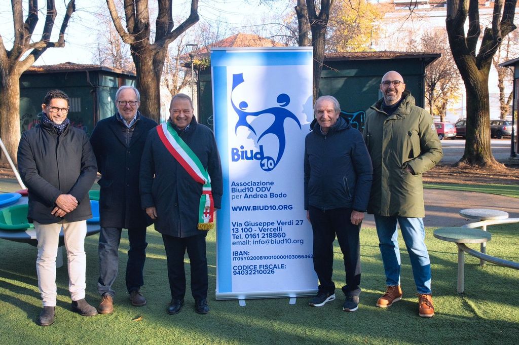 Sono stati ultimati nella prima settimana di dicembre i lavori di riqualificazione del parco giochi inclusivo "Andrea Bodo" di piazza Mazzini. Mercoledì 6 dicembre, i rappresentanti di Biud10, l'associazione che si è fatta carico di eseguire gli interventi, hanno riconsegnato il parco alla città di Vercelli, alla presenza del sindaco Andrea Corsaro e dell’assessore allo Sport Domenico Sabatino.