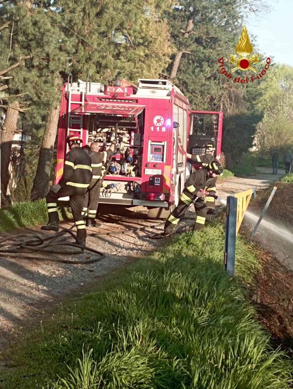 Intorno alle 17,30 di sabato, la squadra dei Vigili del Fuoco del comando di Vercelli è intervenuta in città per un incendio di sterpaglie sull'argine del colatore Cervetto, nella zona di corso Bormida