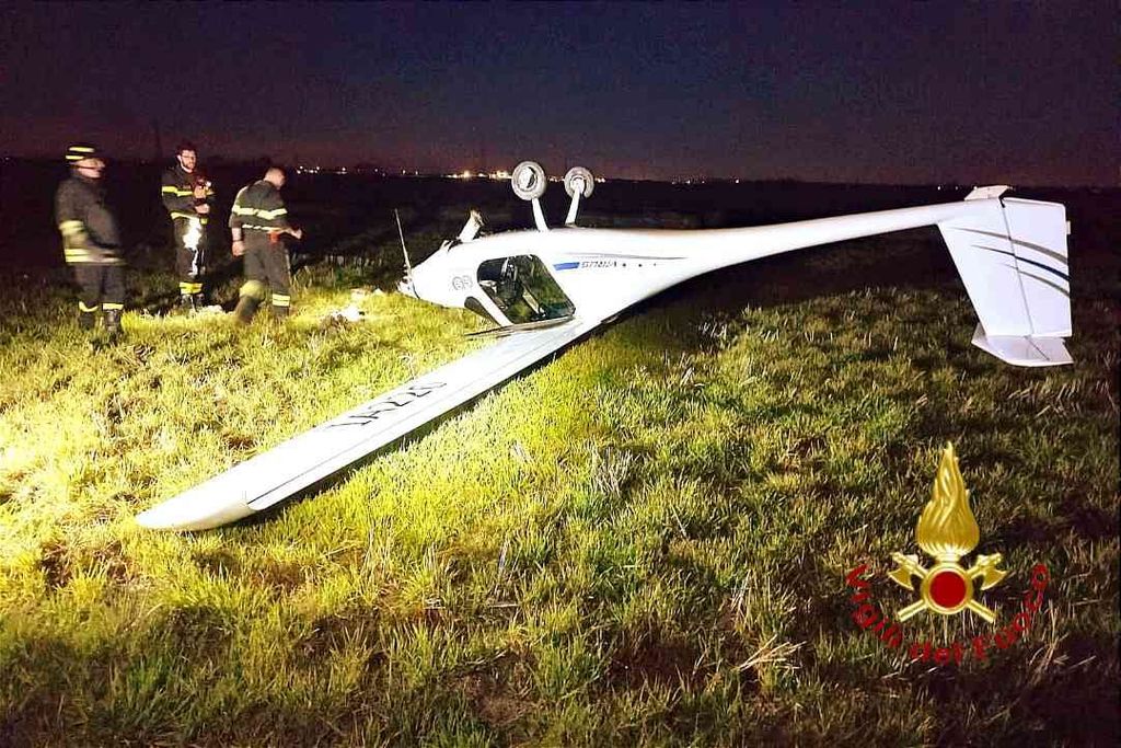 Ignote , al momento, le cause del guasto, all'origine dell'incidente, avvenuto poco prima delle 19: la squadra dei Vigili del Fuoco del Comando di Vercelli e quella volontaria del distaccamento di Trino sono intervenute per i soccorsi. All’arrivo i Vigili del Fuoco non hanno trovato i due occupanti all’interno della cabina del velivolo, ribaltatosi durante l'atterraggio, e hanno immediatamente avviato la ricerca, che si è conclusa subito perché i malcapitati si sono avvicinati appena hanno visto i mezzi dei soccorsi.