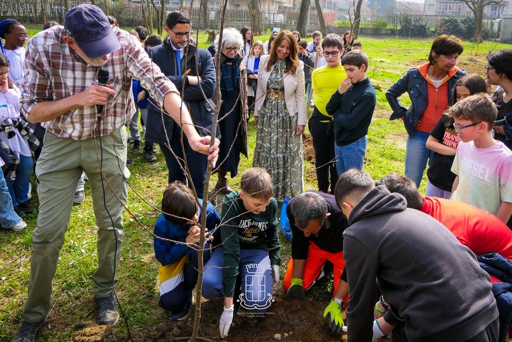 Presenti, per il Comune, gli assessori Domenico Sabatino e Gianna Baucero. «L’Amministrazione ha sostenuto i lavori che hanno permesso di realizzare i primi interventi e continueremo con la messa a dimora di nuovi alberi: sarà un’area verde meravigliosa», ha detto Sabatino. Anche Bucero ha ricordato l’importanza della creazione di uno spazio verde, soprattutto in una scuola dove gli studenti ne possano fare uso e beneficiare.