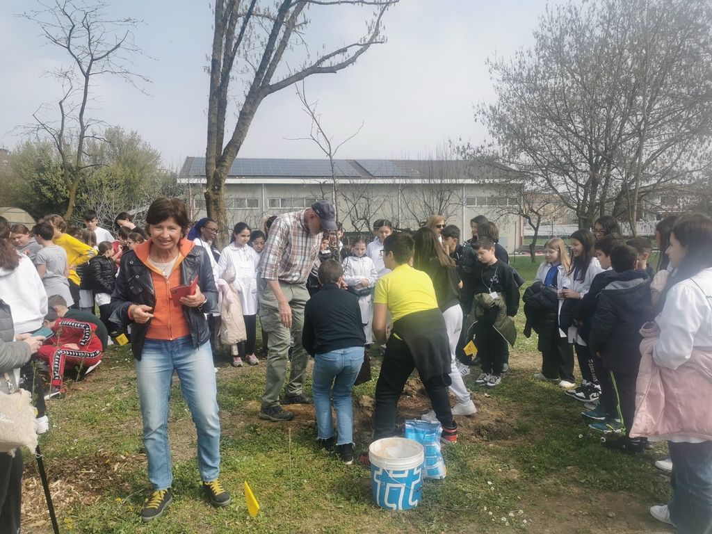 Sono una cinquantina le piante messe a dimora nei giorni scorsi per la ripiantumazione del bosco parco della scuola media Pertini.
