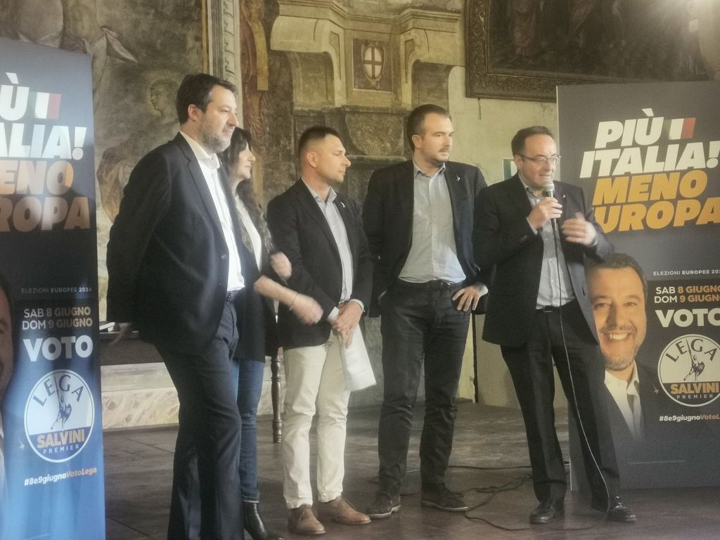 A Giancarlo Locarni, segretario cittadino e capolista, spetta il compito di chiamare i candidati consiglieri per la foto di gruppo insieme a Salvini: tra le (poche, per la verità) assenze spicca quella di Paolo Campominosi, cinque anni al fianco di Scheda nella lista civica e oggi indipendente della lista del Carroccio. L'orario, del resto, non è dei migliori soprattutto per chi lavora in proprio.
