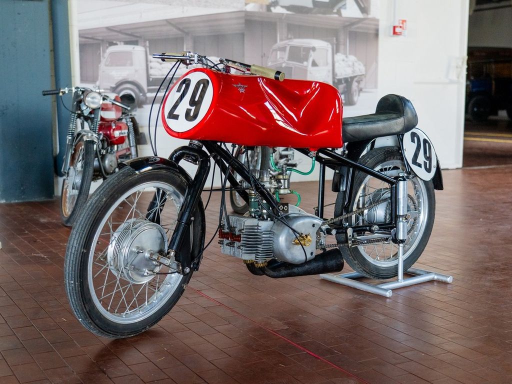 Motociclette sportive: Rumi Gobbetto - collezione Marazzato; Rumi 125 Turismo 1953 - collezione Poluzzi; MV 175 Disco Volante - 1956 - collezione Poluzzi; Triumph 350 TT Sport 1938 - collezione Poluzzi; Lambretta 125 - 1953 - collezione Poluzzi; Motobi 250 Supersport - 1956 - collezione Poluzzi; Kawasaki 125 Corsa - 1973 - collezione Poluzzi; Motom 48 - collezione Poluzzi; Malanca 50 Testa Rossa - 1975 - collezione Poluzzi; Guazzoni Matta 50 Sport- collezione Poluzzi; Aermacchi-Harley Davidson Ala Verde 250 - 1971 - collezione Beccaro.
