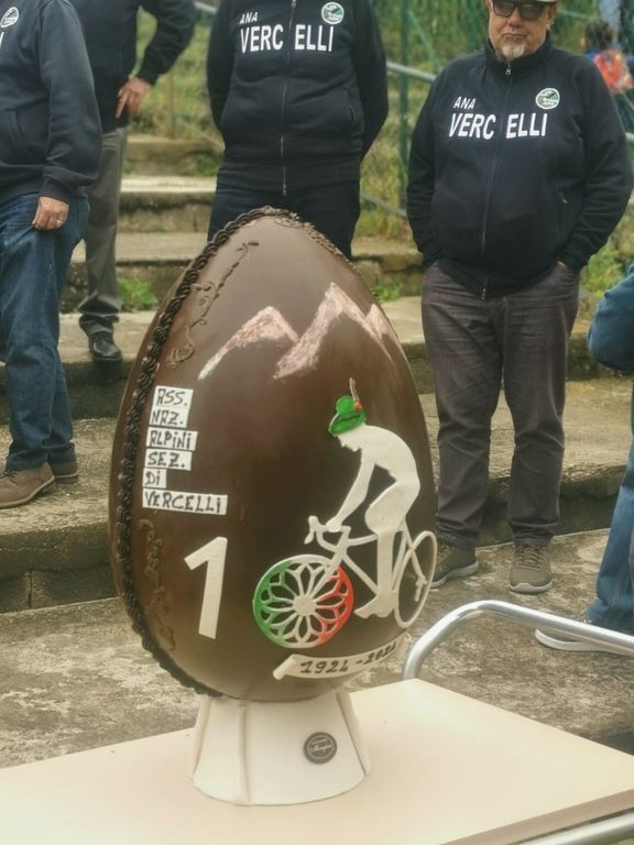 Alla consegna erano presenti Gianni Marino, alpino e vice presidente del Consiglio comunale e il presidente della Provincia Davide Gilardino, oltre ai pasticceri Mongini, autori di un vero capolavoro: sull'uovo, riletti in chiave Alpina, sono rappresentati tutti i simboli della Provincia.