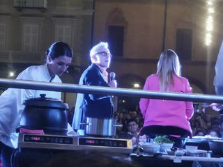 Piazza Cavour gremita per il cooking show di Bruno Barbieri, atteso ospite della Fattoria in Città. Tra applausi, cori e giovanissimi in coda per un selfie, la serata con il popolarissimo giudice di Masterchef si è rivelata un grande successo. Per Ascom e Formater, che ne hanno coordinato l'organizzazione, c'è stata la soddisfazione di aver centrato un obiettivo prestigioso, facendo divertire i vercellesi tra riflessioni sul cibo di qualità e la sfida ai fornelli di quattro corsisti Formater. Ad aprire la giornata vercellese di Barbieri era stata la visita al Principato di Lucedio, dove, 800 anni fa, nacque la coltivazione del riso.