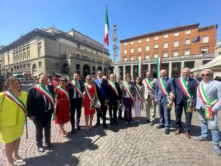 In piazza Zumaglini, sede prescelta per la celebrazione della ricorrenza, si sono dati appuntamento diversi sindaci e rappresentanti delle istituzioni, il presidente della Provincia, il prefetto, Lucio Parente, l'arcivescovo monsignor Marco Arnolfo.