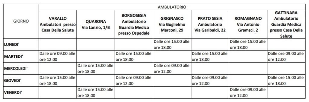 Cliccando sulla foto sotto, è possibile consultare la tabella con gli orari di apertura di tutti e 7 gli Ambulatori attivi sul territorio.