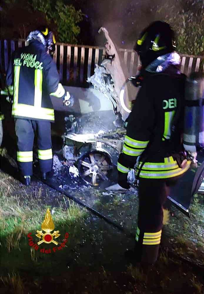 È andata del tutto distrutta l'auto che ha preso fuoco nella tarda serata di mercoledì a Palazzolo. Intorno alle 23, 30 le squadre dei vigili del fuoco del distaccamento di Livorno Ferraris e quella volontaria di Trino sono intervenute a Palazzolo per un incendio vettura. Arrivate sul posto le squadre dei vigili del fuoco hanno provveduto alla completa estinzione delle fiamme che avvolgevano l'automezzo alimentato a gasolio e alla messa in sicurezza dell'area interessata. Intervenuti sul posto anche i carabinieri