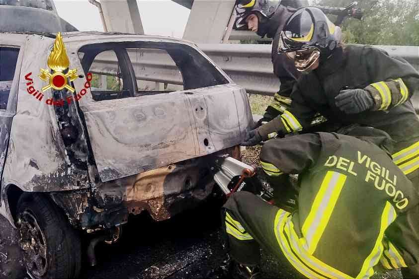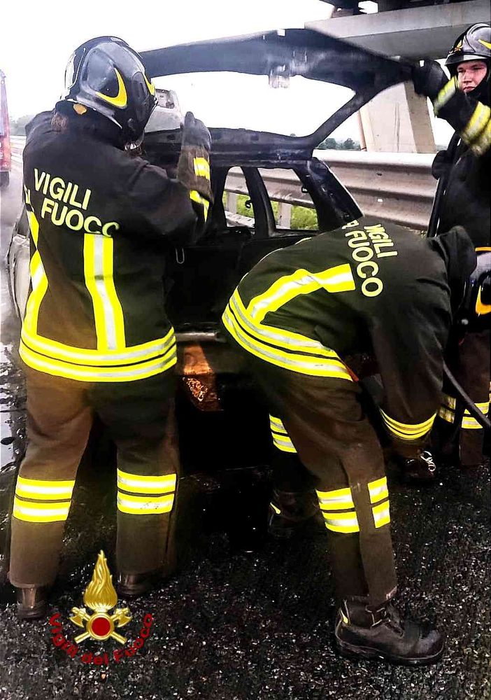 All'arrivo delle squadre l'occupante era già fuori e lontano dalla sua vettura: l'intervento è valso alla completa estinzione delle fiamme ed alla messa in sicurezza dell'area interessata.