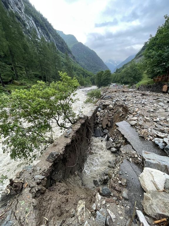 Piogge torrenziali e gravi danni ad Alagna dove il Comune è stato costretto a chiudere sentieri e carrozzabili danneggiati da smottamenti che hanno lesionato anche due ponti pedonali molto utilizzati da turisti e residenti.