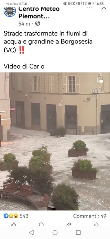 Una grandinata violentissima unita a pioggia torrenziale hanno trasformato le strade di Borgosesia in fiumi di ghiaccio. Venti minuti in cui le temperature sono precipitate, alcune capottine dei negozi sono state divelte e, in alcune zone, si segnalano danni anche alle abitazioni.