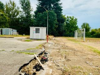 Mezzi al lavoro, nell'area sportiva dell'Aravecchia, in via Baracca, per la riqualificazione del campo di calcio e delle strutture annesse.