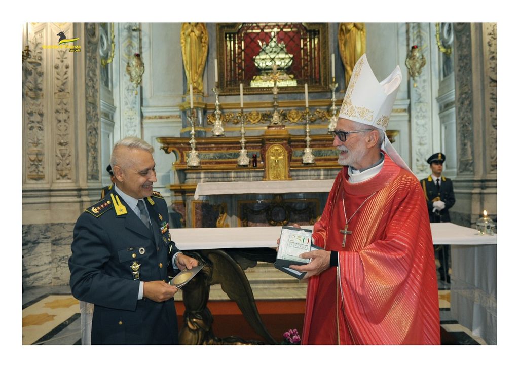 Nel Duomo di Vercelli, la solenne liturgia eucaristica è stata officiata da S.E. Reverendissima l’Arcivescovo Metropolita Marco Arnolfo nella suggestiva Cappella che custodisce le sacre reliquie di San Eusebio primo Vescovo e Patrono della città e del Piemonte, alla presenza dell’On. Emanuele Pozzolo, di S.E. il Prefetto, del Sindaco, del Procuratore Capo della Repubblica e delle altre Autorità civili e militari della Provincia che hanno voluto condividere il significativo momento di preghiera con le Fiamme Gialle.