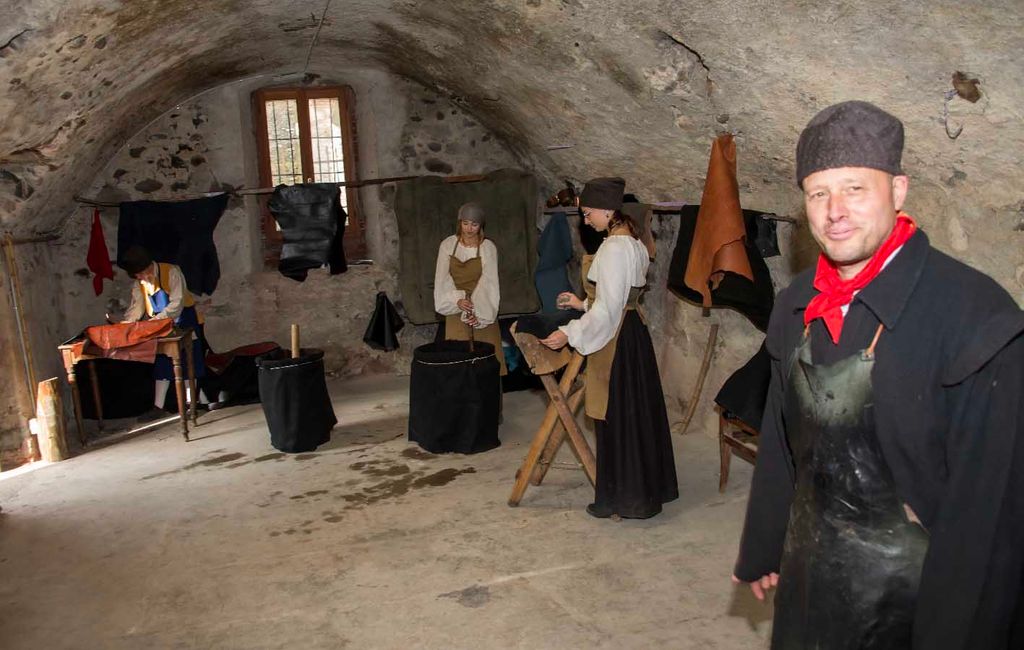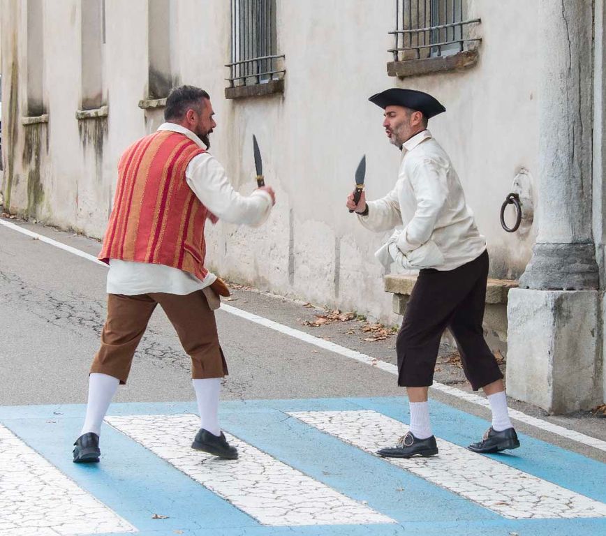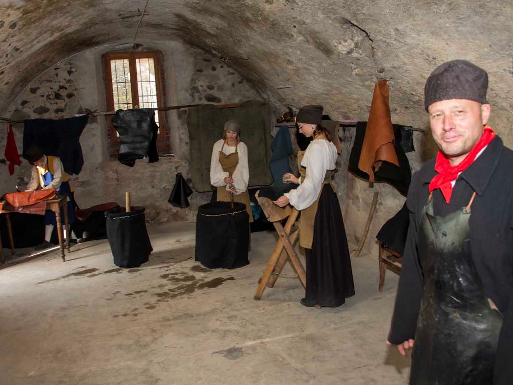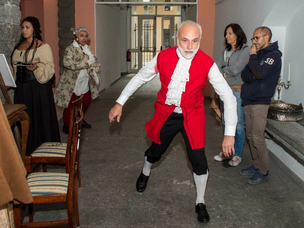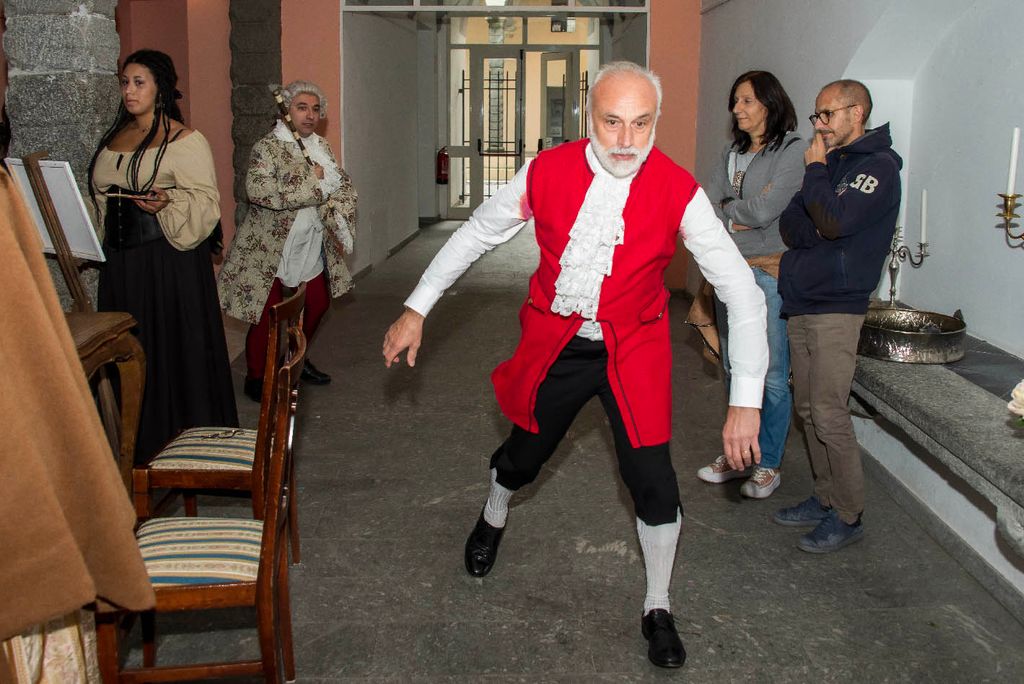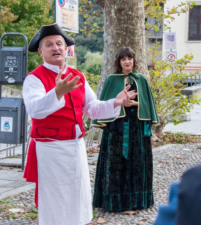 Lungo le rive del Mastallone erano nate molte attività: mulini, filatoi, concerie, segherie, che per avere l’energia sfruttavano l’acqua dei due canali, la Roggia Bersana e la Roggia Mulinera: “Linfa vitale per ogni attività produttiva”. L’oratorio della Madonna dei Bori, prendeva nome delle vasche in cui veniva lasciata macerare la canapa, le lavandaie disponevano i loro assi lungo i corsi d’acqua, in apposite vasche si allevavano le trote. Il Piazzarolo era il cuore produttivo della Varallo proto-industriale. Ad accompagnare i visitatori: Giuseppe Gilardone, Maria Galizia, la nipote Teresa Galizia, Maria Chiara Sorini, moglie del proprietario della conceria alla Scarpiola, Pietro Chiara Sorini, che nel suo laboratorio cercava di mettere a tacere le proteste degli operai, che reclamavano di essere pagati: “Queste torbide acque della malora sono piene di miserabili”. Francesca Casarotto, cameriera del marchese Paolo Camillo D’Adda, accompagnava nel palazzo dove il nobile, con la consorte Francesca, si lamentava delle pretese della “plebaglia”. L’invito rivolto al cameriere Ermenegildo affinché offrisse agli ospiti una cioccolata, prelibatezza in voga nel Settecento, veniva disatteso perché il pover’uomo era solito ubriacarsi e tra i fumi dell’alcool denunciava le condizioni di sfruttamento della servitù. Una delle tappe era il cortile di Casa Morgiazzi, diventata famosa per una rivolta dei ceti più deboli contro l’eccessiva tassazione, dove sedevano dame non troppo morigerate e serve ciarliere. All’esterno di Palazzo D’Adda si assisteva ad un duello per motivi passionali, mentre l’oste dell’Osteria del Falcone cercava di procacciarsi i clienti vantando le doti della sua osteria, contrapponendola all’Osteria del Sole d’oro, assai poco raccomandabile. Il viaggio si concludeva scendendo alla Bersana, con le torbide acque della malora testimoni di forti conflitti sociali tra la classe operaia e l’emergente borghesia imprenditoriale, rappresentata dal Pansiotti, titolare del lanificio. I visitatori hanno avuto l’occasione di apprezzare i caratteri dell’architettura varallese del Settecento descritti dal Professor Casimiro Debiaggi in un suo studio pubblicato nel 1959: “Gli schemi tradizionali restano validi ancora nel secolo XVIII per l’architettura civile, in cui permangono quasi invariati i caratteristici porticati, le sovrastanti logge e sovente le altane, ad ornare col loro elegante ritmo di archetti le case valsesiane… Nei centri maggiori: Varallo, Borgosesia e Valduggia, le case signorili, che ambiscono quasi il titolo di palazzo, sono decorati con ricchi ornati in stucco dai disegni fastosi….oppure più semplicemente hanno la facciata ricoperta di affreschi ornamentali…nello stesso tempo sagomati balconcini dalle ringhiere in ferro battuto ed elegantemente forgiati ed i battenti delle porte scolpiti ed intagliati completano nobilmente l’eleganza degli edifici”.