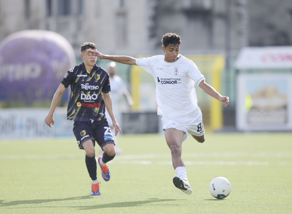 46'. Cross dalla sinistra di Disanto, Di Carmine anticipa tutti e mette dentro. Vantaggio del Trento.