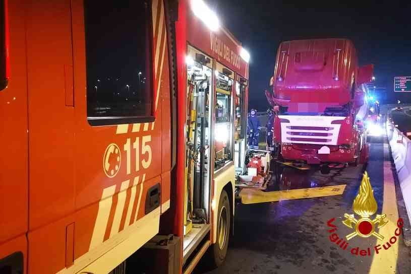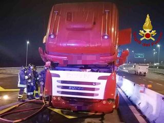 Arrivate sul posto le squadre dei vigili del fuoco hanno provveduto al raffreddamento del vano motore evitando che si propagasse al resto del mezzo pesante.