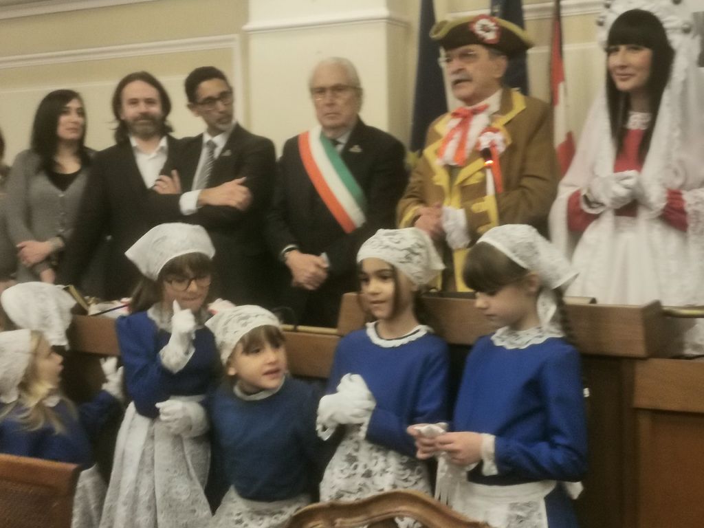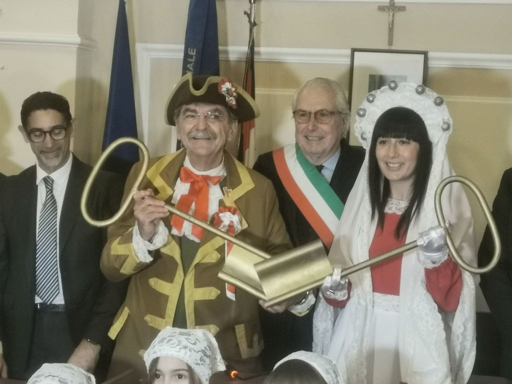 Carnevale al via con la consegna delle chiavi della città alle maschere, Claudi Cagnoni, Bicciolano, e Alessia Dimartino, Bèla Majin. «Adesso per un paio di mesi la gestione di cantieri, spazzatura, erbacce e buche sarà un problema vostro», scherza il sindaco Roberto Scheda, nel corso del simbolico passaggio dei poteri, avvenuto in una sala del Consiglio gremita di maschere e di rappresentanti dell'amministrazione comunale.