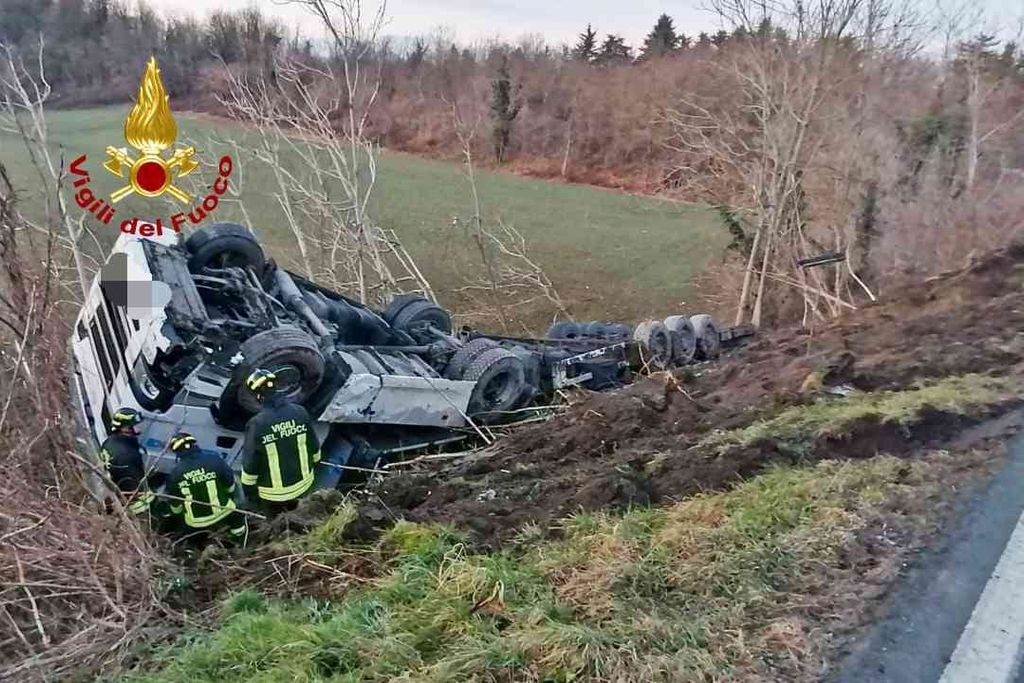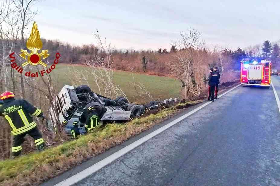 Il mezzo, uscendo dalla carreggiata, si è rovesciato in una scarpata: il conducente non ha riportato ferite, ma per la messa in sicurezza del mezzo, è stato necessario l'intervento di una squadra dei Vigili del Fuoco del distaccamento volontario di Santhià e di una del Comando provinciale di Vercelli.