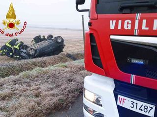 All' arrivo della squadra dei Vigili del fuoco, l'unico occupante della vettura che ha terminato il suo percorso capovolta in un campo era già fuori dall' abitacolo.