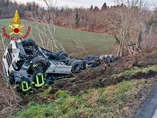 Il mezzo, uscendo dalla carreggiata, si è rovesciato in una scarpata: il conducente non ha riportato ferite, ma per la messa in sicurezza del mezzo, è stato necessario l'intervento di una squadra dei Vigili del Fuoco del distaccamento volontario di Santhià e di una del Comando provinciale di Vercelli.