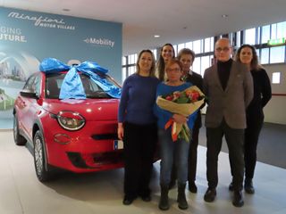 È stata consegnata nei giorni scorsi la Fiat 600 1.2 Hybrid 100 CV alla Signora Laura per lo scontrino vincente del punto vendita di Via Adorno a Torino. Gioia e commozione hanno fatto da sfondo alla premiazione, avvenuta alla presenza del Signor Giovanni Sapino e del Consiglio di Amministrazione di Prestofresco, insieme ai responsabili delle risorse umane e del negozio.