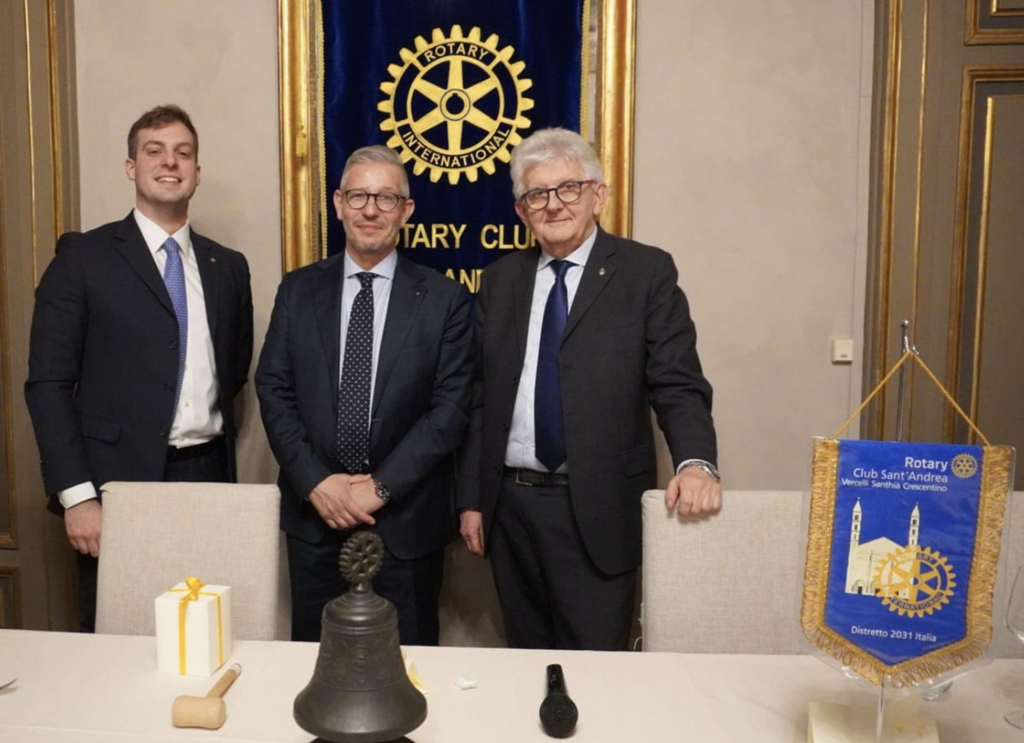 Oltre all’Assistente del Governatore per i Rotary Club Gruppo Piemonte Centrale Giorgio Delleani, alla conviviale erano presenti il Presidente del Rotary Vercelli Luca Migliau, il Presidente del Rotary Viverone Lago Giuseppe Orto e il Presidente del Rotaract Sant’Andrea Umberto Cappa.