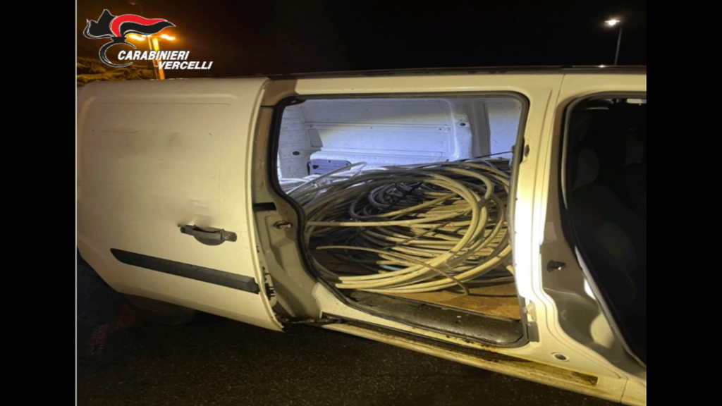 La pattuglia, raggiunte le condizioni di sicurezza, ha così superato il furgone e, sfruttando un restringimento della carreggiata, ha bloccato il mezzo. All’atto del primo controllo degli operanti, è subito emerso un quadro indiziario inequivoco: i due uomini a bordo del mezzo erano privi di documenti e indossavano abiti con tracce di fango e di sostanze oleose. All’interno del cassone erano stivati cavi di rame recisi, di ampia sezione e in quantità pari ad alcuni quintali, oltre a utensili, guanti e lampade frontali. Materiale, si sarebbe scoperto per ammissione degli stessi fermati, utilizzato per sezionare cavi e asportarli da un'azienda oggetto di intrusione.