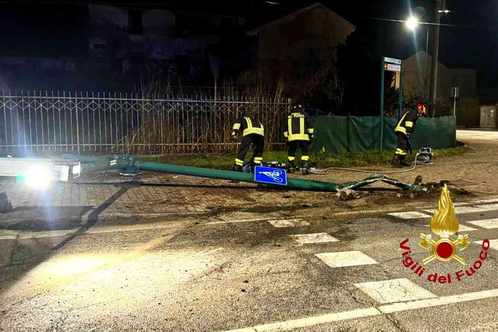 Ha affrontato male la rotonda di ingresso a Trino, abbattendo un palo e danneggiando gravemente l'autovettura. Incidente autonomo, nelle prime ore di martedì, poco dopo le 3, sulla Sp31 bis all'ingresso del centro abitato.