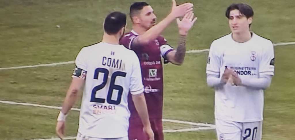 Cross di Pino, servito da Iotti, per la testa di Comi: il colpo di testa è perfetto, ma Gasparini si supera e toglie la palla dal sette. Miracolo del portiere, ex Pro Vercelli (come ex è, oltre a Zigoni, Marco Firenze, che Tedino ha “parcheggiato” in panchina).