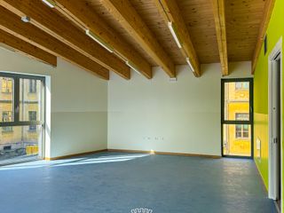 Al piano terreno ci sono quattro delle cinque sezioni (l’altra è al primo piano): tutte sono dotate del proprio blocco bagno, del trattamento dell’aria per la stagione estiva, hanno soffitti con sistemi per l’abbattimento di tipo acustico. Al primo piano lo spazio per le attività comuni, per esempio i laboratori di psicomotricità, e l’area dormitorio.