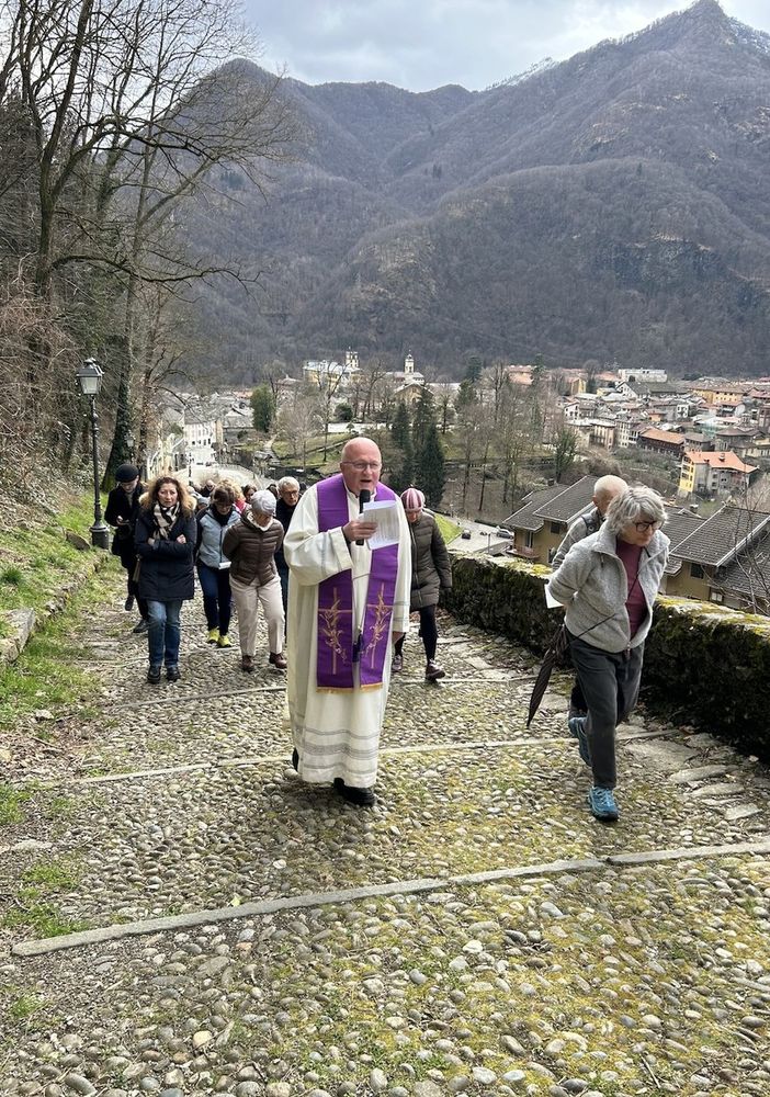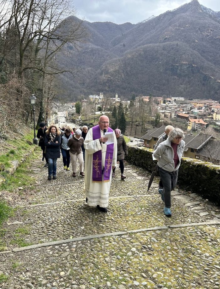 All’uscita della chiesa la nota lunga e maestosa dello Shofar - il piccolo corno di montone utilizzato ancora oggi come strumento musicale - suonato da Sandro Antonini, trombettista del Coro Liturgico San Gaudenzio, evocava la convocazione solenne, diventava monito a riflettere sulla propria vita, marcando il momento della partenza, l’incamminarsi lungo la strada acciottolata che conduce al Sacro Monte. La processione, guidata dal filo conduttore della Speranza, tema giubilare, è stata scandita dalla recita del Rosario, da letture sacre, tratte dai Vangeli quaresimali (“La Quaresima – ha ricordato Don Roberto - era il periodo di preparazione per i catecumeni, che volevano ricevere il battesimo”) e da canti, con soste di riflessione alle cappelle lungo la strada: Cappella della Madonna del riposo, Cappella di Cesare Maggi, il generale napoletano che da invasore si trasformò in penitente, Cappella del Cristo Bianco.