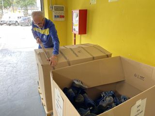 Dal Centro logistico di Via Reiss Romoli, sono partiti i primi camion con centinaia di scarpe usate pronte ad intraprendere una nuova vita per un sistema che a regime porterà al riciclo di oltre 25.000 scarpe ogni anno. «Abbiamo deciso di recuperare le calzature antinfortunistiche giunte a fine vita che Poste fornisce ai portalettere e al personale impiegato negli stabilimenti logistici e la trasformazione di queste in materiale per la pavimentazione antiurto in dotazione ai parchi giochi per bambini come quelli che si trovano nei nostri asili aziendali Poste Bimbi a Roma e a Bologna - spiega Michele Sgobba responsabile Gestione Operativa di Poste Italiane nel Nord Ovest -. Le calzature vengono raccolte ogni due mesi nei centri logistici di Poste dislocati in tutta Italia e trasportate presso il Centro di smistamento della corrispondenza di Ancona, dove vengono prelevate e preparate per un nuovo utilizzo».
