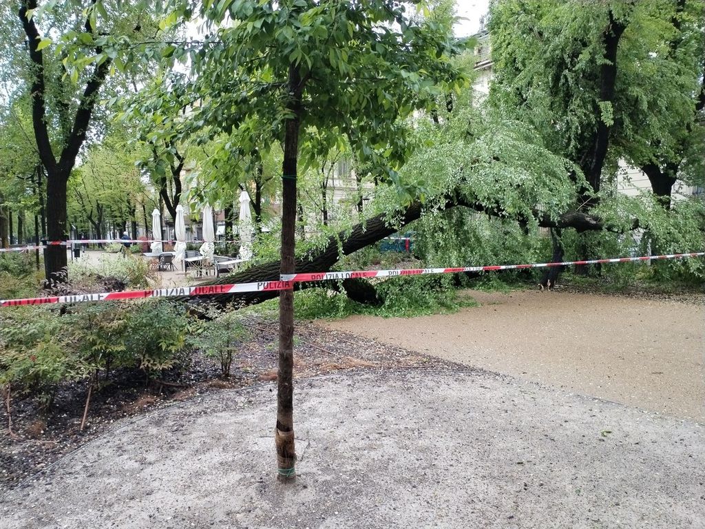 Un albero è crollato, intorno alle 9,30, nel tratto di viale Garibaldi riaperto la scorsa estate: la pianta ha ostruito l'allea pedonale, ora transennata.