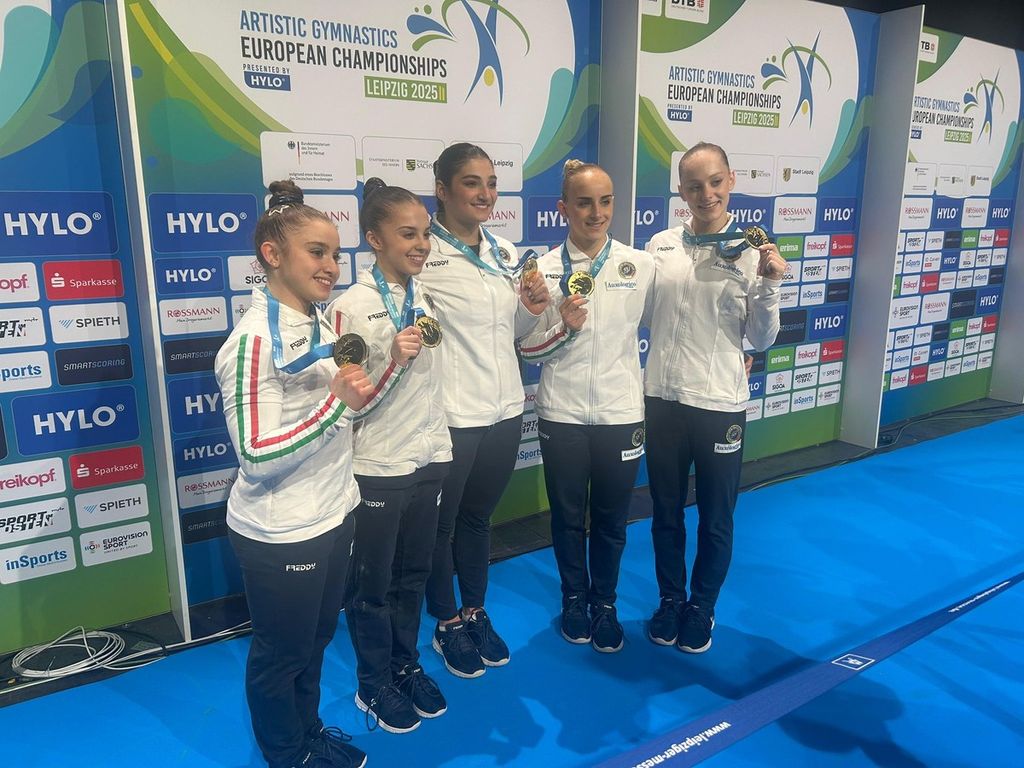 Giulia Perotti è campionessa europea con la Nazionale di ginnastica artistica femminile che conquista l'oro nella gara a squadre che ha aperto oggi gli Europei di Lipsia.