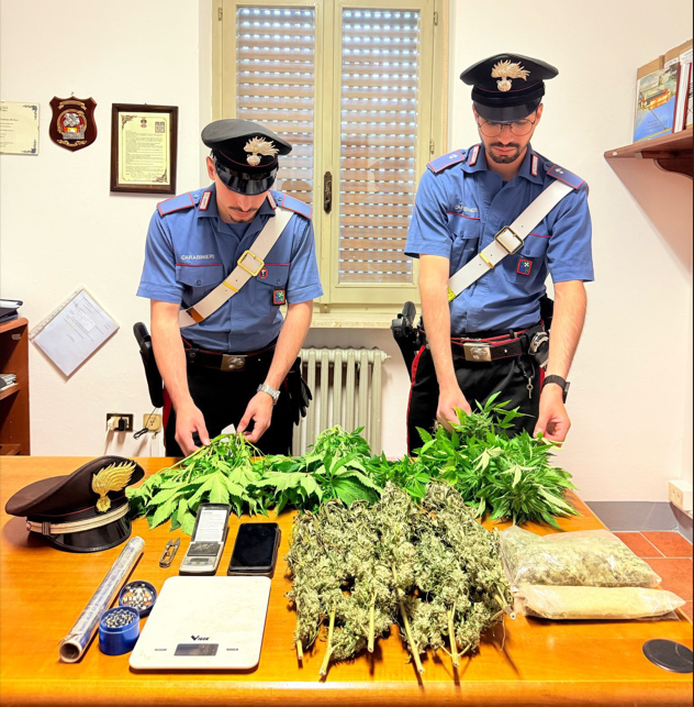 All’interno della serra sono state rinvenute tre piante di marijuana dall’altezza di circa 60 centimetri, due buste in plastica contenente marijuana rispettivamente dal peso complessivo di 120 grammi, una decina di rami con inflorescenza essiccata per un peso di circa 230 grammi, un bilancino di precisione, una bilancia e un grinder (trita erba).