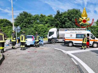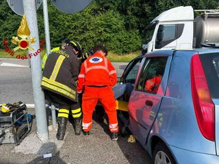 Incidente stradale tra un mezzo pesante e una autovettura, intorno alle 9 di mercoledì 28 maggio, sulla SP03 all' uscita del casello autostradale di Carisio. Per i soccorsi è intervenuta la squadra dei Vigili del fuoco di Livorno Ferraris insieme a quella Volontaria di Santhià: all'arrivo hanno creato un accesso alla vettura per poter rendere facile l accesso ai sanitari della Croce Blu; successivamente si sono occuapti della messa in sicurezza di entrambe i mezzi e dell' area interessata.