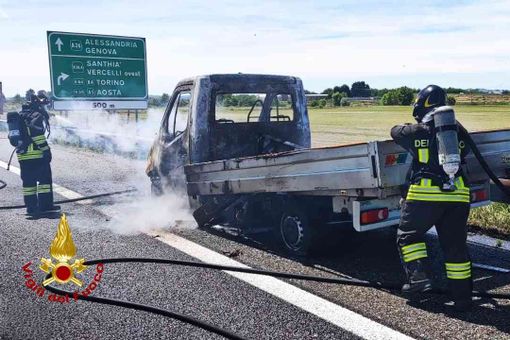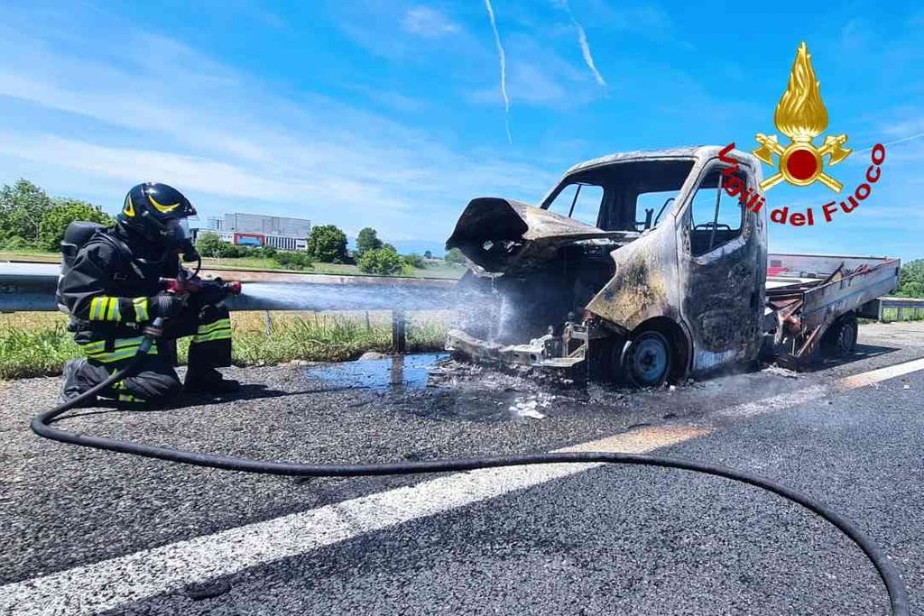 Cassonato in fiamme, intorno alle 13 giovedì 29 maggio, nei pressi del casello autostradale di Larizzate. La squadra dei Vigili del Fuoco della Centrale di Vercelli è stata allertata per l'incendio di un furgone, sul tratto autostradale della A26 in direzione Genova.