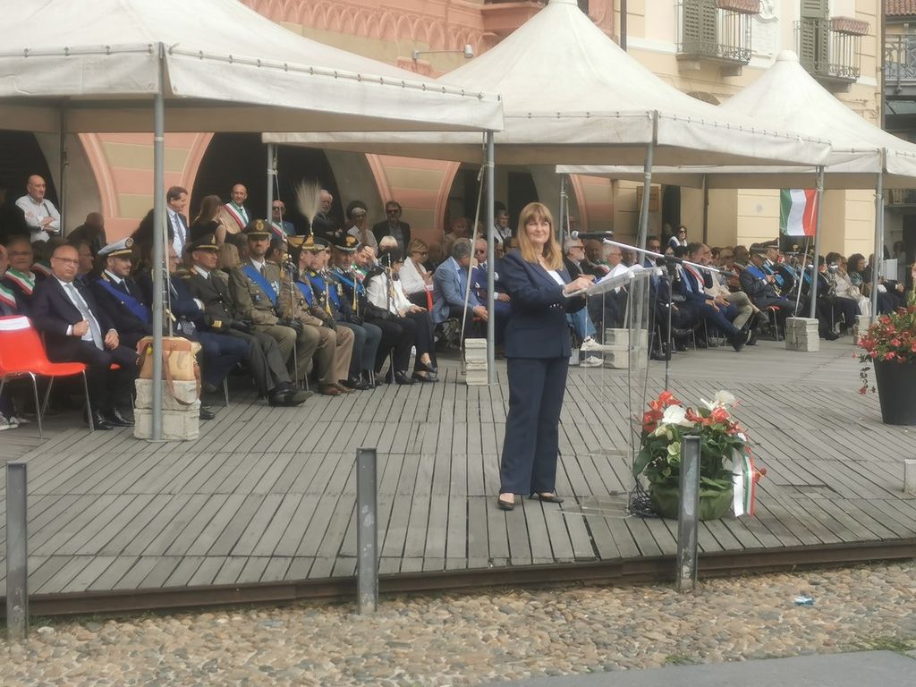 «Scegliamo esempi, modelli, cose positive da custodire di questa nostra Italia. E prepariamoci a vivere i capitoli nuovi di questa storia»: ha detto il sindaco di Vercelli, Roberto Scheda, durante uno dei passaggi più applauditi del suo intervento. Ospite della giornata il docente Upo Enrico Biano che ha tenuto l'allocuzione ufficiale su “La bellezza e il valore della democrazia”.