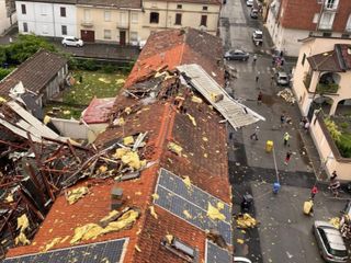 Domenica di lavoro e di stima dei danni anche a Trino dove si sono avuti tetti scoperchiati in via Alfieri, grondaie pericolanti e piante atterrate alla Robella.