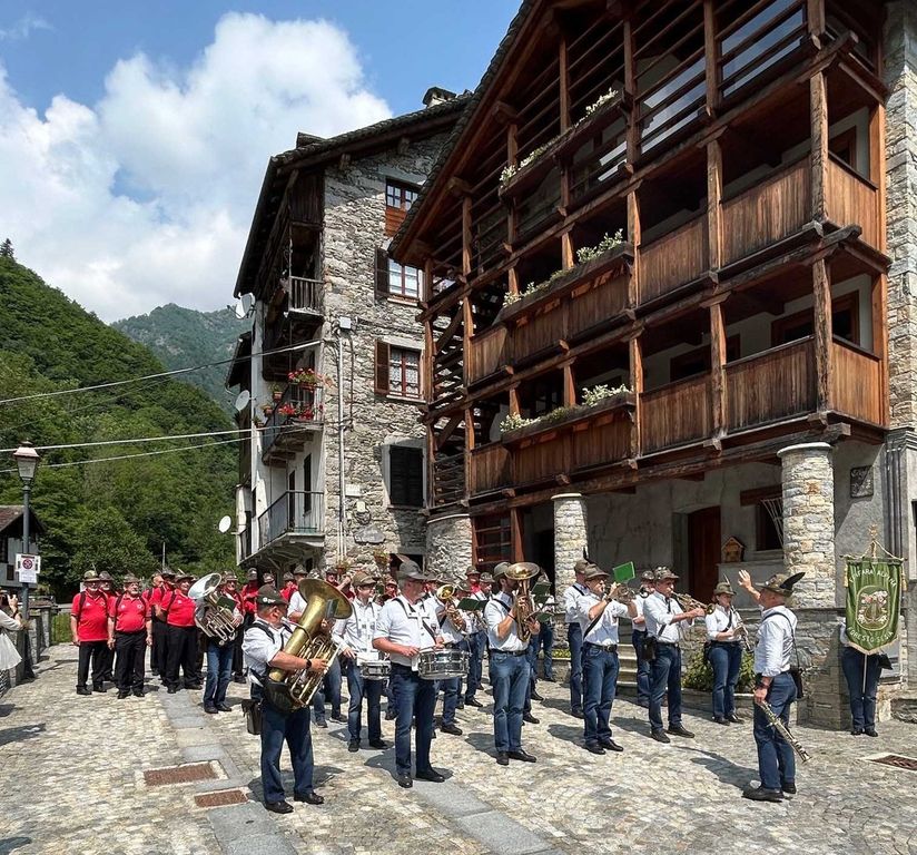 La colonna musicale della giornata è stata suonata dalla Fanfara Alpina di Foresto, che ha aperto con l’Inno dei Borghi, seguito dall’Inno alla gioia, avviandosi in corteo verso il Cantone più alto di Rassa suonando e cantando con l’ausilio del Coro Alpin dal Rosa.