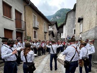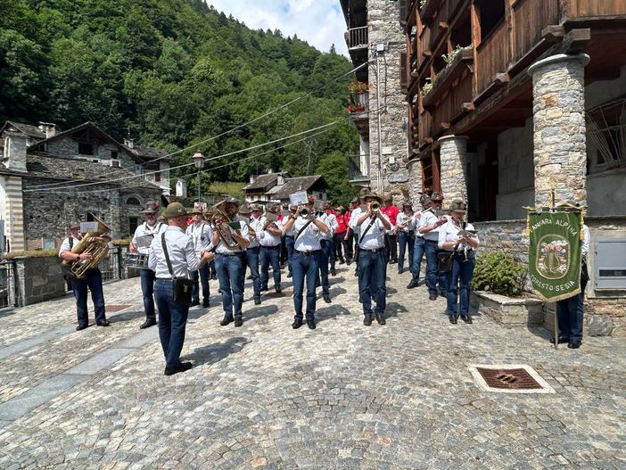 La colonna musicale della giornata è stata suonata dalla Fanfara Alpina di Foresto, che ha aperto con l’Inno dei Borghi, seguito dall’Inno alla gioia, avviandosi in corteo verso il Cantone più alto di Rassa suonando e cantando con l’ausilio del Coro Alpin dal Rosa.
