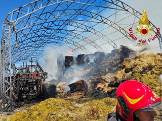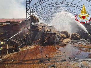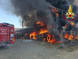Il personale dell'Agenzia di Protezione Ambientale ha monitorati tutte le fasi dell'incendio, che ha prodotto un fumo nero ben visibile dalla città, ha interessato una struttura agricola, con il coinvolgimento di una stalla e un rudere in disuso: a bruciare in particolare sono state rotoballe di fieno depositate all’interno del complesso.