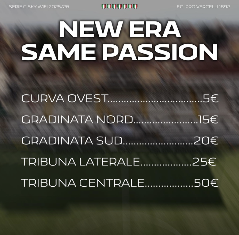 Sottoscrivere l’abbonamento non è solo un gesto di sostegno, ma una dichiarazione d’amore verso la maglia bianca. Ogni voce allo stadio, ogni bandiera al vento, ogni applauso farà la differenza nel nostro percorso. E qui voglio condividere con voi una scelta importante della nuova proprietà: abbiamo deciso di mantenere invariati i prezzi degli abbonamenti rispetto alla scorsa stagione e di abbassare il costo dei biglietti singoli. Il nostro obiettivo è chiaro: riempire il “Silvio Piola”, riportare entusiasmo e coinvolgere sempre più persone nel sostenere la Pro Vercelli. Vogliamo uno stadio vivo, caloroso, un vero fortino per la nostra squadra.