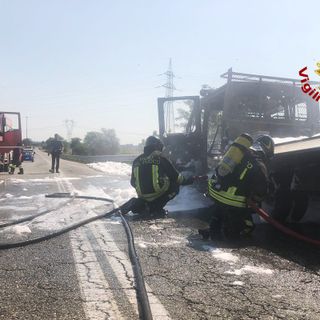 Mezzo per la manutenzione stradale in fiamme