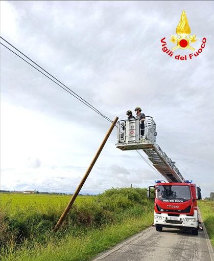 Intervento dei Vigili del Fuoco, nel pomeriggio di giovedì, in strada Santa Maria, a Crescentino, per un palo pericolante. La richiesta di interventi è arrivata intorno alle 17: sul posto una squadra del distaccamento di Livorno Ferraris e un’autoscala del Comando di Vercelli si sono occupate della messa in sicurezza del palo, posizionandolo sull'argine della carreggiata.