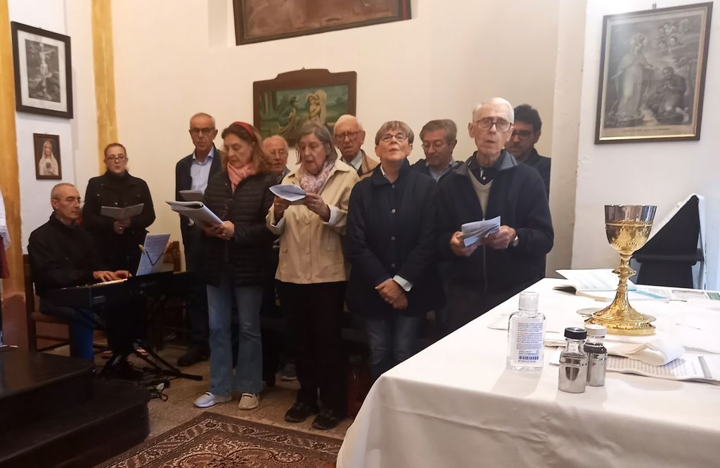 Dopo la benedizione degli appezzamenti di terreno antistanti l’oratorio donati da Rossana Savioli, che li aveva ereditati dalla madre Adelaide Berteletti, è stato intonato: “Signore delle cime”, il canto di montagna composto da Bepi De Marzi nel 1958, ispirato alla morte dell'amico Bepi Bertagnoli travolto da una slavina. Al dolore per la perdita, si lega un sentimento di speranza e preghiera, invocando Dio come "Signore delle cime" per accogliere l'amico defunto sulle montagne del Paradiso. Lo struggente canto di saluto, è stato l’omaggio tributato dalla Corale a tutti gli Amici di Sant’Antonio andati avanti.