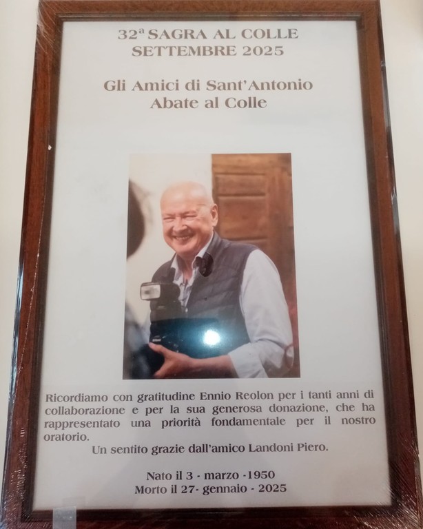 Al termine della messa il parroco e gli amici Piero Landoni, fabbricere e anima della piccola chiesa che mantiene ordinata, pulita ed accogliente, e Piera, hanno ricordato il fotografo Ennio Reolon, persona discreta, gentile ed accogliente, mancato prematuramente il 27 gennaio scorso. Una sua fotografia con alcune parole di affettuosa gratitudine, è stata appesa alle candide pareti dell’Oratorio. In sua memoria parenti, amici e conoscenti avevano raccolto del denaro che è stato ripartito tra la chiesa della Natività di Maria a Gattera, l’oratorio di Sant’Antonio e la Pieve di Santa Maria di Naula, cui Ennio era particolarmente legato attraverso l’amicizia con le persone che curano e mantengono questi luoghi sacri.