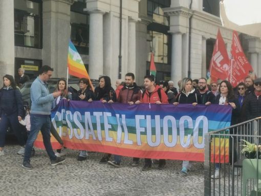 Anche a Borgosesia (dove pure si era svolta la manifestazione in memoria degli operatori sanitari) un corteo e in flash mob hanno richiamato l'urgenza di azioni internazionali a garanzia del cessate il fuoco e di una pace duratura.