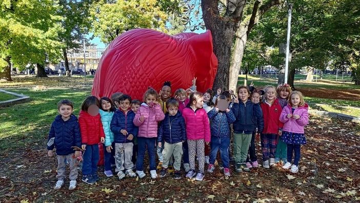 Nei giorni scorsi i bambini della scuola dell’infanzia Sacro Cuore di Vercelli si sono trasformati in piccoli esploratori d’arte, protagonisti di una speciale uscita alla scoperta delle installazione di Cracking Art che colorano in questo periodo la città. Armati di entusiasmo, spirito di osservazione e tanta curiosità, i piccoli hanno percorso le vie del centro storico accompagnati dalle loro insegnanti, alla ricerca delle sculture realizzate con plastica rigenerata: chi ha trovato un elefante rosso, chi ha scovato una lumaca verde o un branco di lupi gialli nascosti nei pressi della Basilica di Sant’Andrea. Ogni incontro con le opere è diventato un momento di meraviglia e scoperta. Durante la passeggiata, i bambini hanno potuto osservare come l’arte possa uscire dai musei e “abitare” la città, diventando parte del paesaggio urbano e stimolando la fantasia.