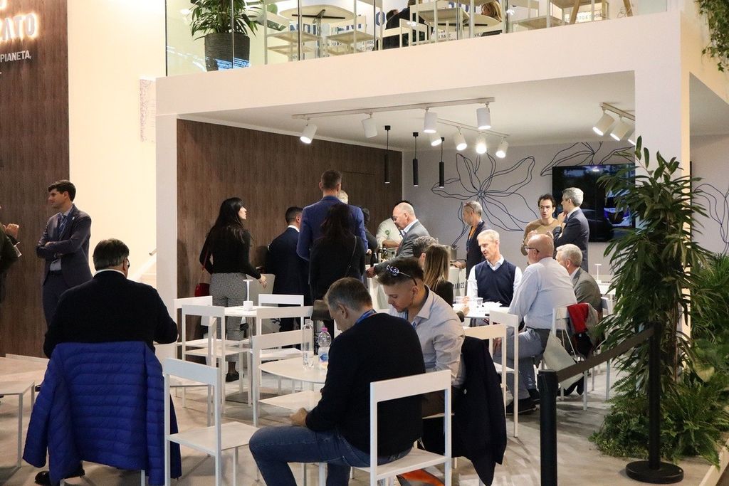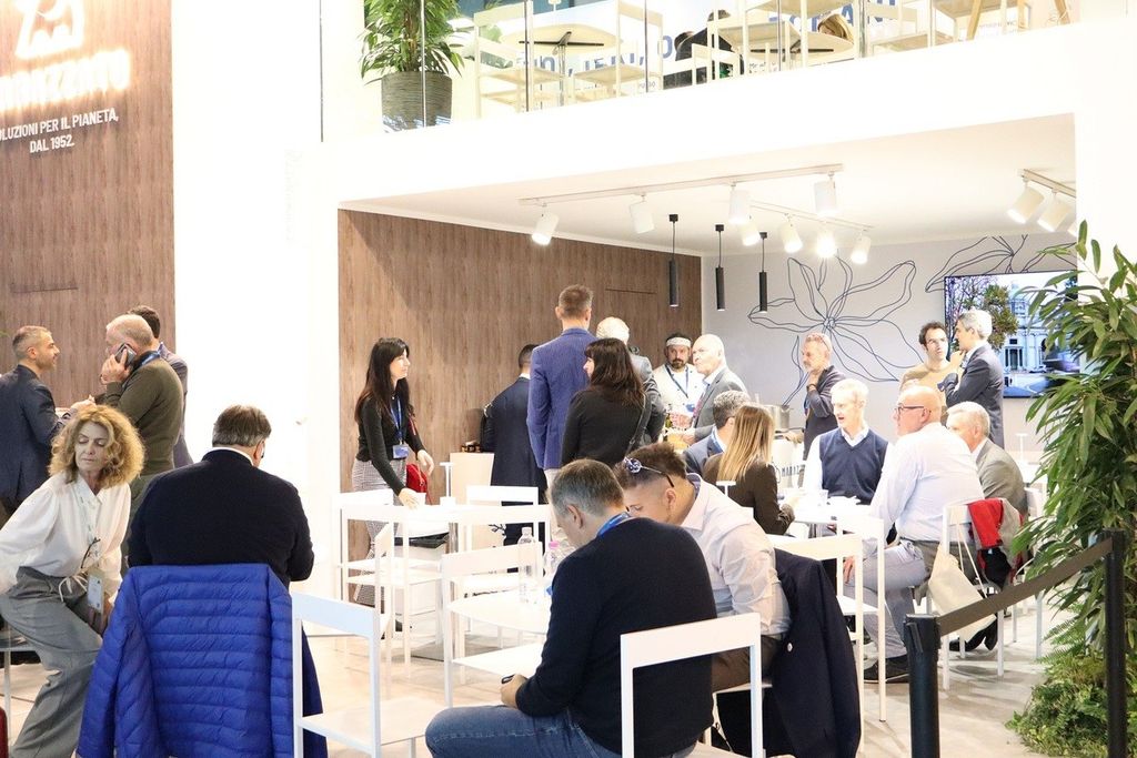 Fulcro della presenza del Gruppo Marazzato a Ecomondo è stato, naturalmente, lo stand, allestito nel padiglione C1: rinnovato nella grafica e nei materiali con un’impronta green ancora più evidente e coerente con la visione aziendale, è stato meta di un continuo flusso di visite, specialmente da parte di aziende, partner e rappresentanti delle istituzioni tra cui quella del Ministro dell'Ambiente e della Sicurezza energetica Gilberto Pichetto Fratin nel pomeriggio di giovedì 6.